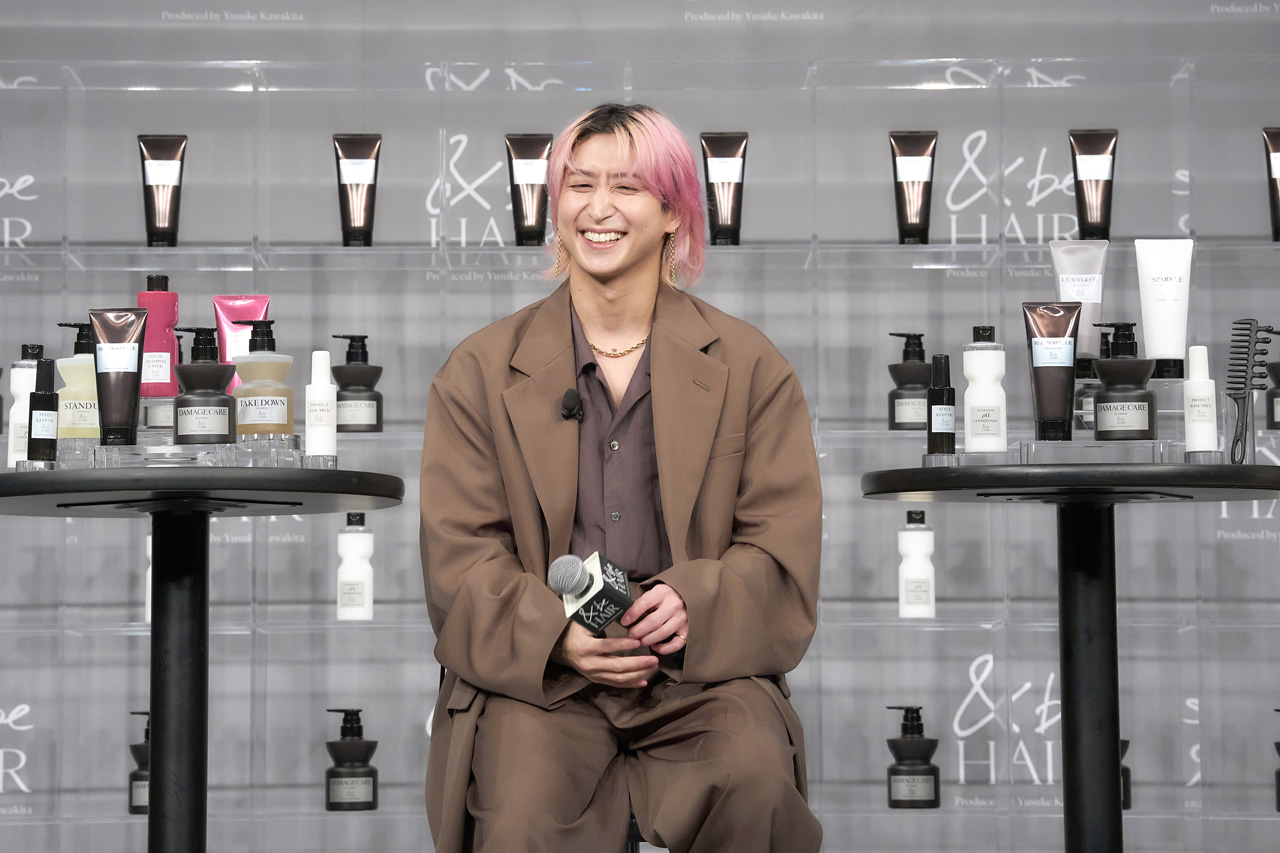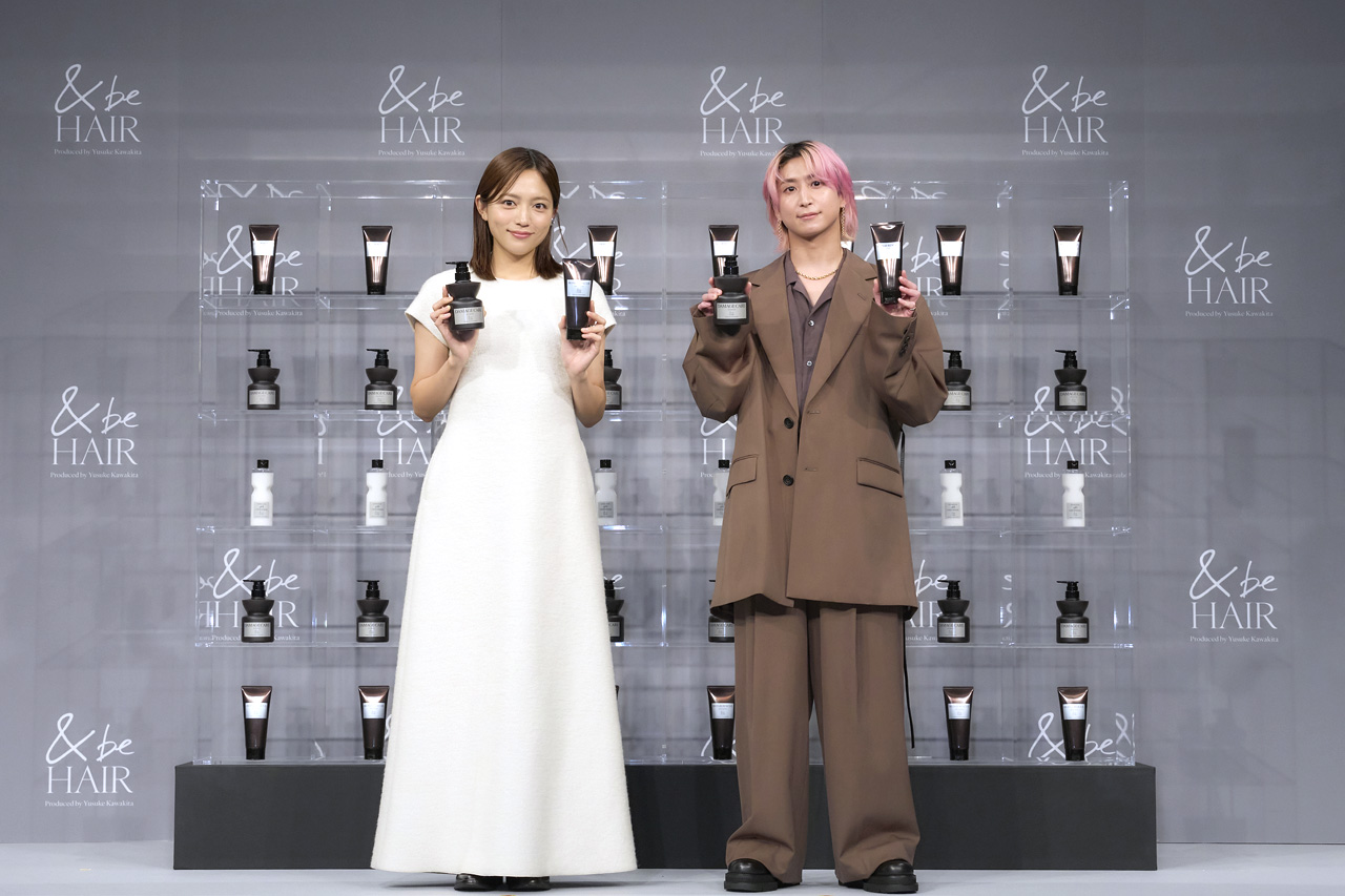 両篇のラストシーンでは、横に並んで「&be HAIR」と声をそろえるお2人ですが、実は撮影は別々に行われていて、お会いするのは今日が初めてとのこと。佐久間さんは「バラエティ番組とかでも会ったことがなかったので、今日お会いできてとても嬉しいです」と、川口さんは「テレビで見ているので初めてお会いした気が全くしないです」とそれぞれコメント。