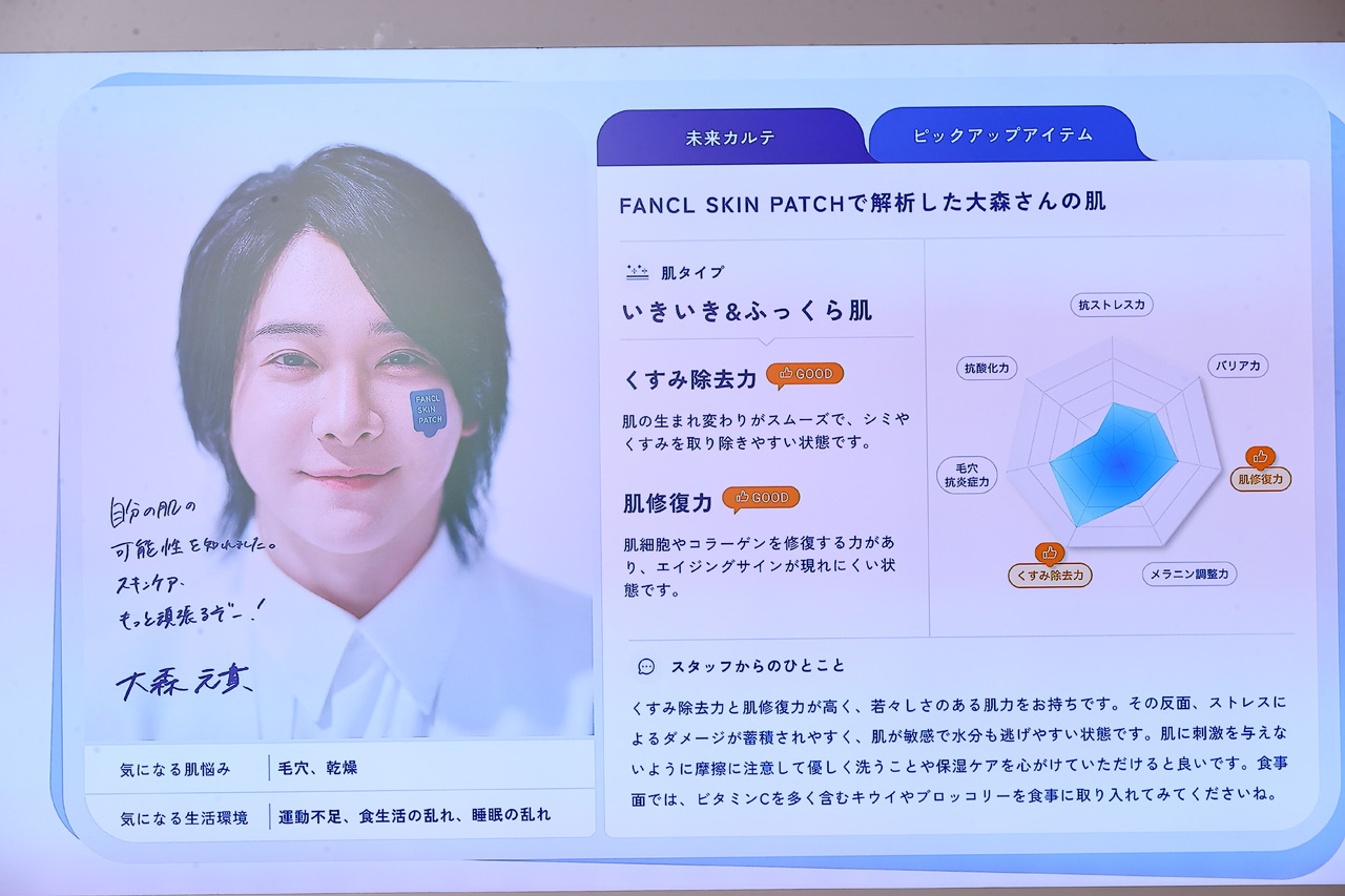 さらに、自分の肌の未来のことを診断前に予想してもらい、診断と同じになるかということも行ったそうだが4人のなかで大森だけピタリと『毛穴』と当てたといい、大森は「未来の肌の悩みが出たので、じゃあどうしたらいいのというのを考えました」としみじみ。すると若井が「大森はんさすが!天才肌やね」と繰り返しイジり、大森は照れ笑いしながら席から立ち上がったり、藤澤は大森は「未来のことを読んで動くことが多いですから」と納得といった様子だった。
