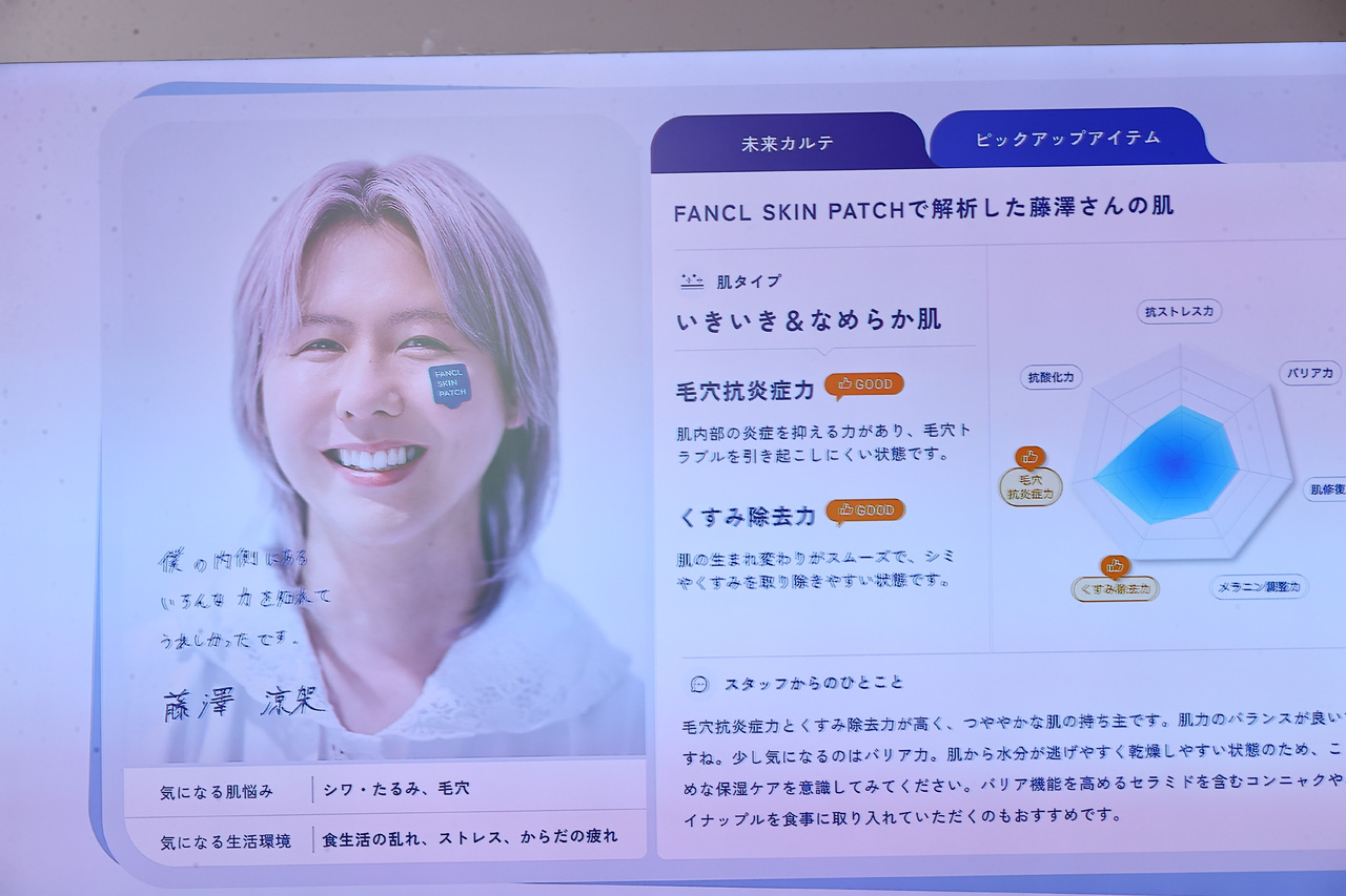 藤澤は4人がパッチをほほにつけるビジュアルが公開されたことに「みんながほほにパッチを張ってるのカワイイですよね」とニッコリで、「褒めてもらえるのも嬉しいし、前向きな部分を見つけてもらえるのは元気がもらえます」とその診断結果の伝え方へ喜びも。浜辺もその話にうなずきながら「意外な結果が出て知らないものだなって感じました」と話した。