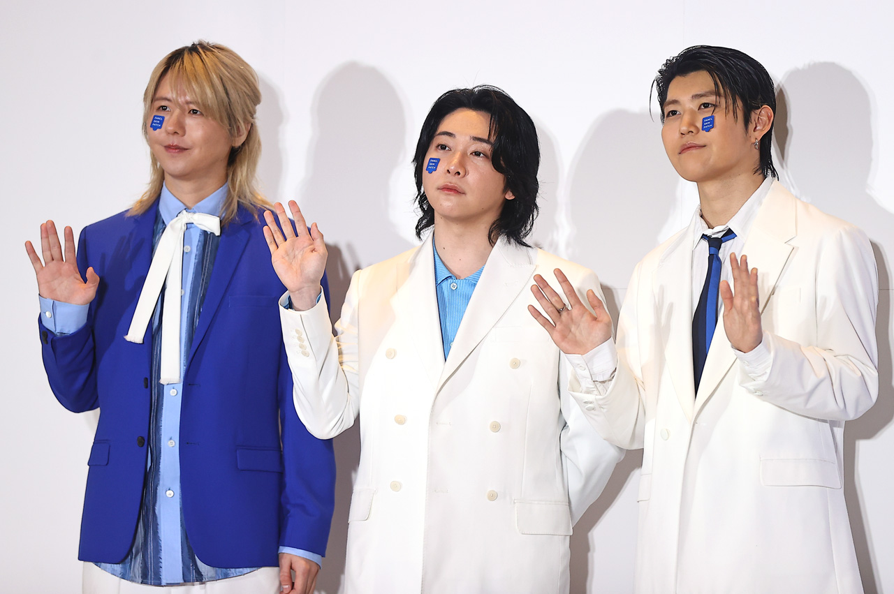 “ミセス”の愛称で親しまれているバンド『Mrs. GREEN APPLE』の大森元貴、若井滉斗、藤澤涼架、俳優・浜辺美波が3月9日に東京・ミッドタウン日比谷アトリウム内で『FANCL SKIN PATCH』全国ローンチ発表会に出席した。