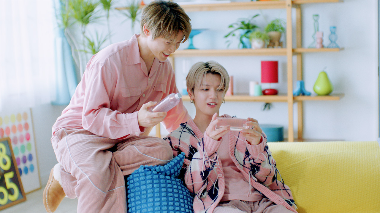 シュウ:普段はメンバーカラーの衣装を着ることが多いのですが、今回はメンバーカラーの人もいれば、MEDULLA のパッケージに合わせて普段とは違う色を着ているメンバーもいて、いつもとはまた違った新鮮な気分で撮影に臨めました。ラフな衣装で、アクセサリーもいつもより少なめだったので、本当に楽屋にいるような、わちゃわちゃした雰囲気がありましたね。