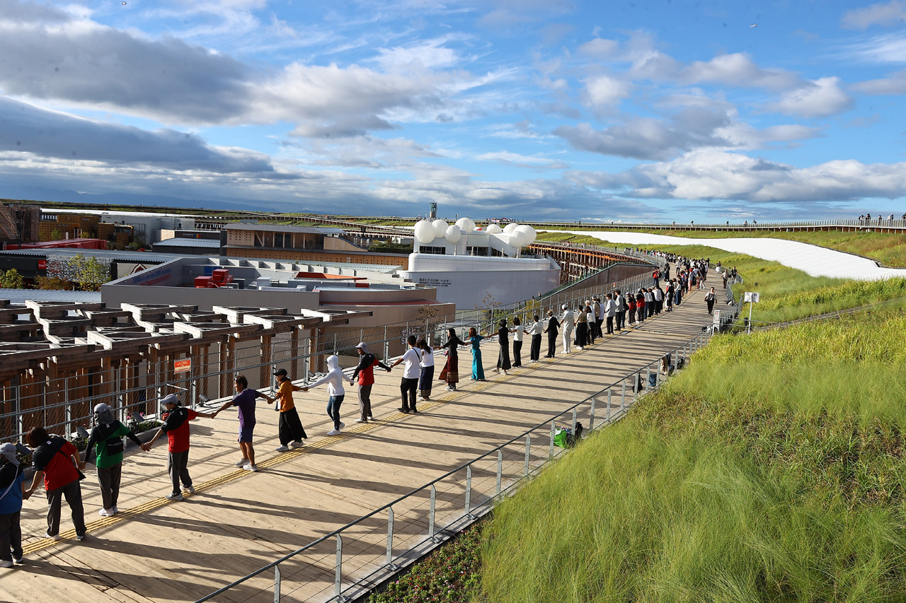 2025年大阪・関西万博の理念やテーマの一節にある『自然界に存在するさまざまないのちの共通性と相違性を認識し、他者への共感を育み、また多様な文化や考えを尊重しあうことによって、ともにこの世界を生きていく』を体現したかのような光景が大屋根リングに広がるものとなっていた。