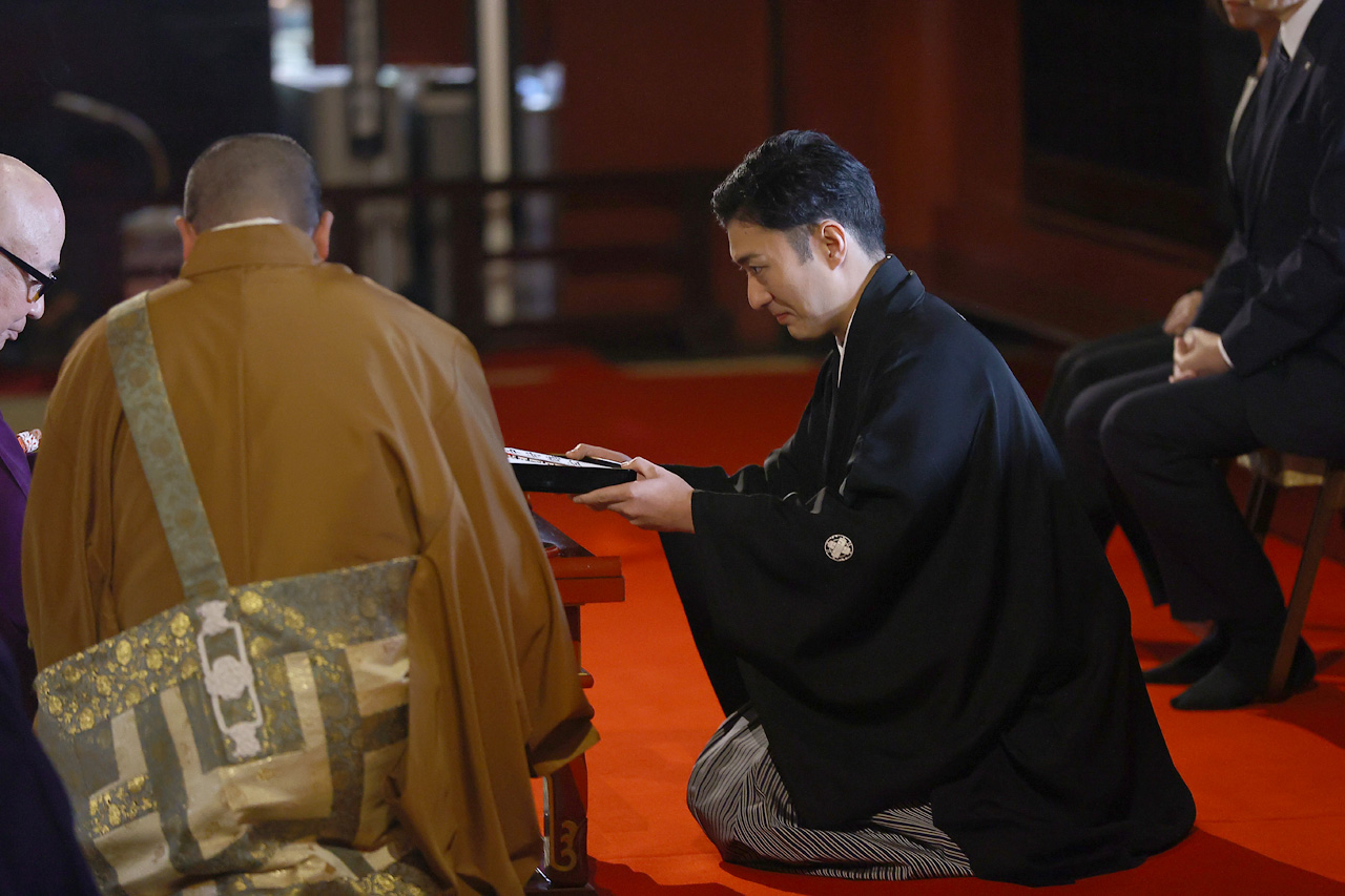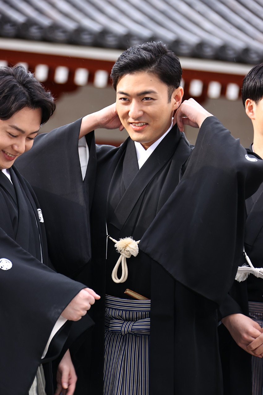 歌舞伎俳優・中村橋之助、市川男寅、中村莟玉、市川染五郎、尾上左近、中村鶴松が11月18日に東京・浅草寺で2026年1月2日から上演予定の『新春浅草歌舞伎』の成功祈願を松竹副社長で演劇本部長の山根成之氏とともに行った。