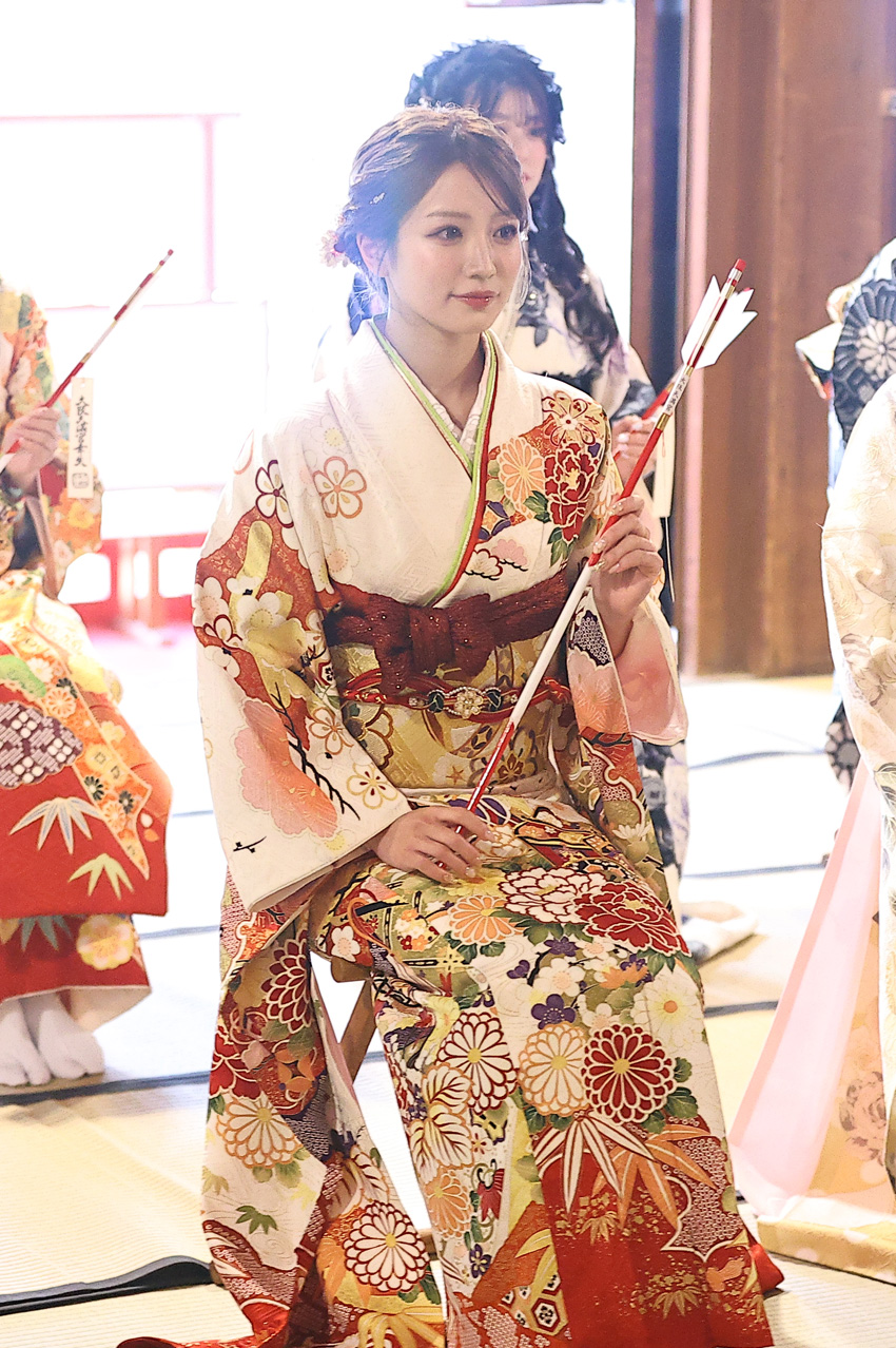 あでやかな振袖姿を披露した坂田。本日の衣装のポイントへ「私は今回『THE・王道』な振袖にしてみました。ヘアアレンジもまとめてすっきりさせたり、和風な感じの振袖にしてみました。やっぱりアイドルとしても王道アイドルを目指したいので、振袖も王道ということで」と、ほほ笑む。