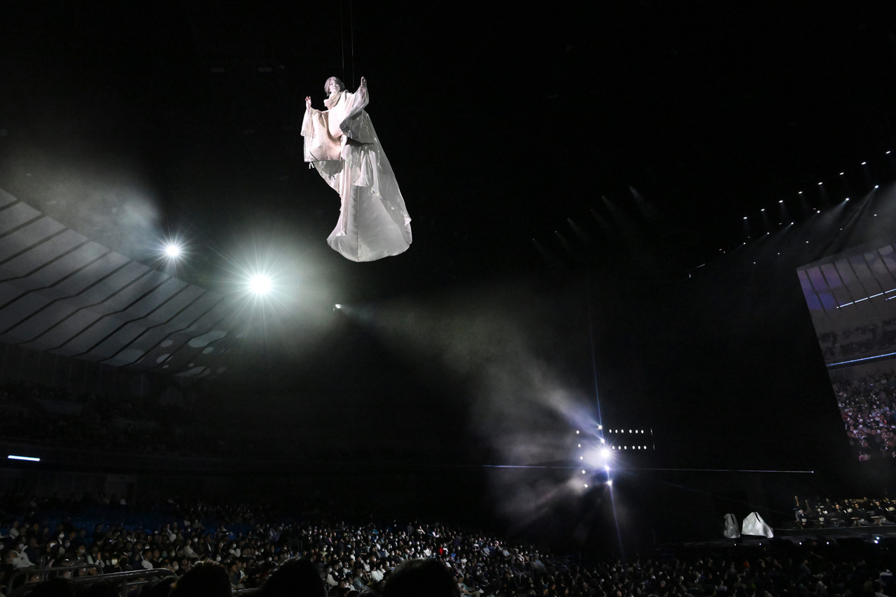 そして物語はクライマックスへ。カヲルが高く宙へ浮かび上がり、空中で鮮やかに見得を切ると、観客の興奮は最高潮に!客席の上を優雅に舞い続けるカヲルのあまりの神々しさに、会場中が騒然。鳴り止まぬ拍手と歓声が、会場を一つに包み込んだ。