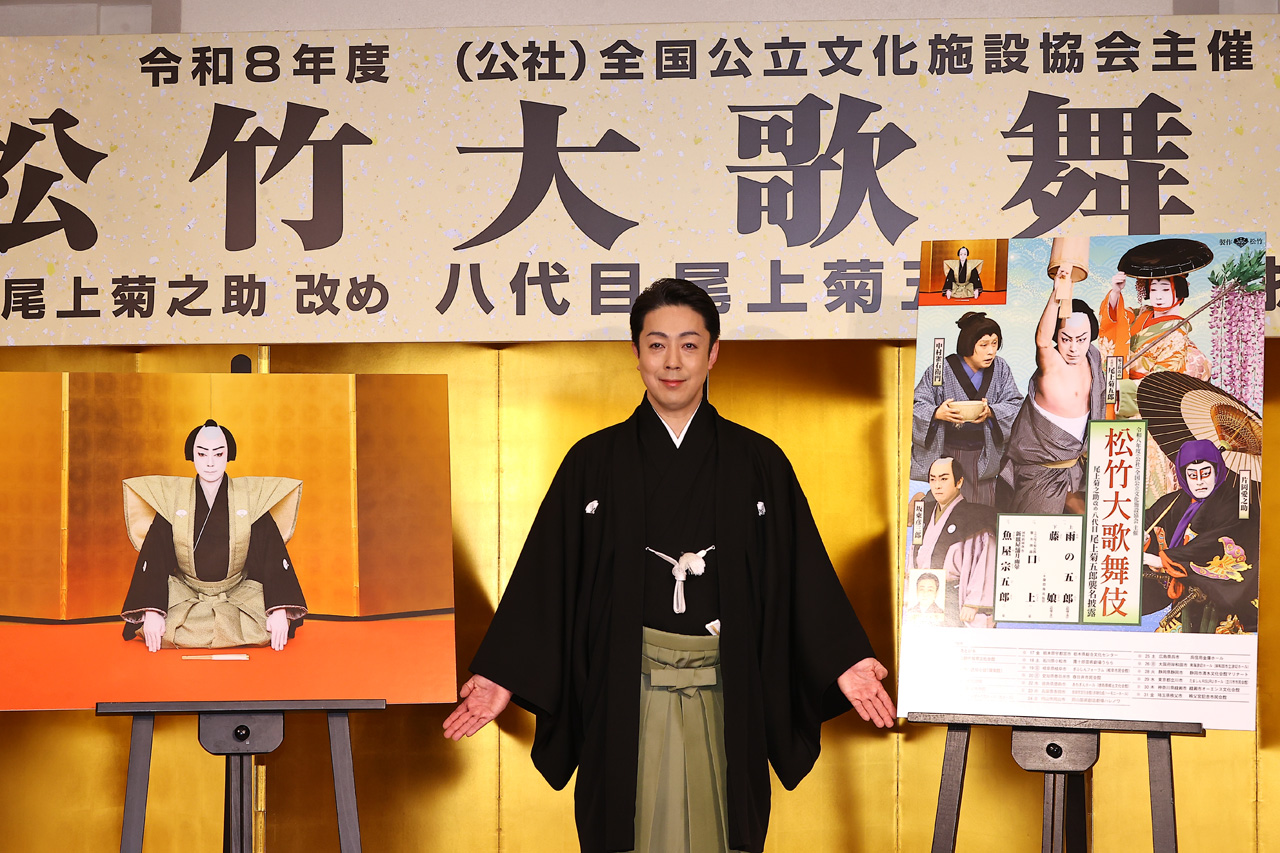 『令和八年度(公社)全国公立文化施設協会主催「松竹大歌舞伎」尾上菊之助改め八代目尾上菊五郎襲名披露』製作発表記者会見が3月17日に都内ホテルで開かれ尾上菊之助改め八代目尾上菊五郎が登壇した。