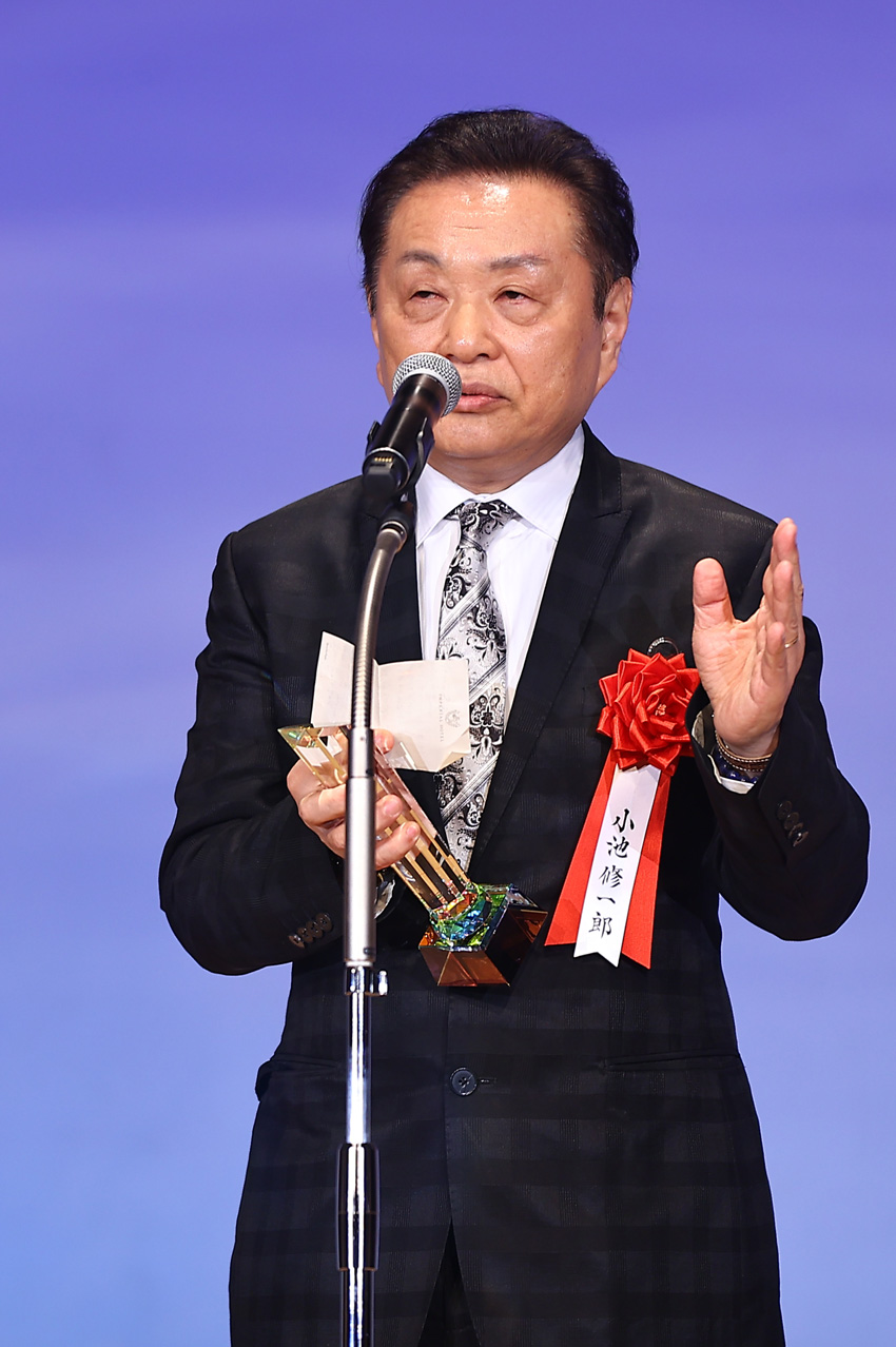 壇上で小池氏は「このご連絡いただいた時に、『本当に私なんですか?』とちょっと、聞きました。なぜならば、第1回が杉良太郎さんで、前回が松平健さんということで、その人々の並びの中、私のような裏方と言いますか……この賞に見合うかどうかというところは自分としては実感が沸いていなかったんです」と恐縮しきり。それでも「今トロフィーを頂いて『本当に選んでいただいたんだ』ということで改めて感謝いたしております」と、噛み締めるように語った。