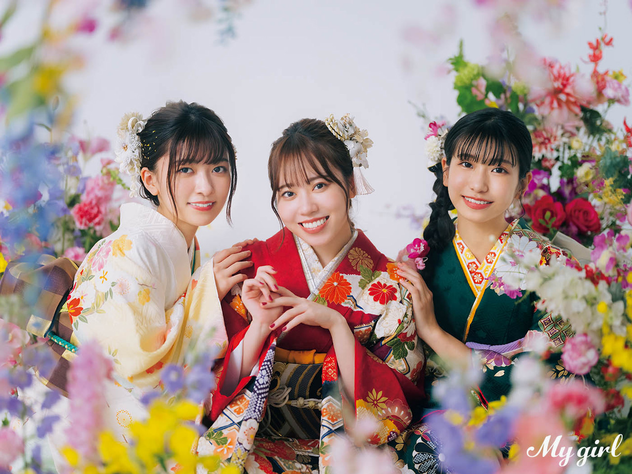 一方、2nd COVER SPECIAL(裏表紙)では20歳の伊達さゆり、鈴原希実、後本萌葉の3人が登場し振袖姿を披露。あわせて20ページ超の特集も組まれ、美麗な振袖姿などでの撮り下ろしを中心に構成。そのなかで、「理想の大人像」や20歳になったことでのさまざまな「変化」をテーマにしたクロストークも繰り広げており、3人の今のリアルな言葉が詰まった内容となった。