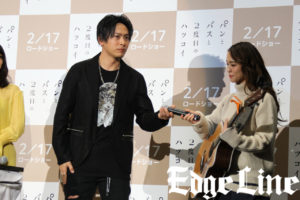 俳優・深川麻衣(26)、『三代目J Soul Brothers』山下健二郎(32)が22日、東京・調布のシアタス調布で映画『パンとバスと2度目のハツコイ』(監督:今泉力哉/配給:映画『パンとバスと2度目のハツコイ』製作委員会)完成披露舞台あいさつを今泉監督、本作主題歌を歌う歌手・Leolaとともに開いた。