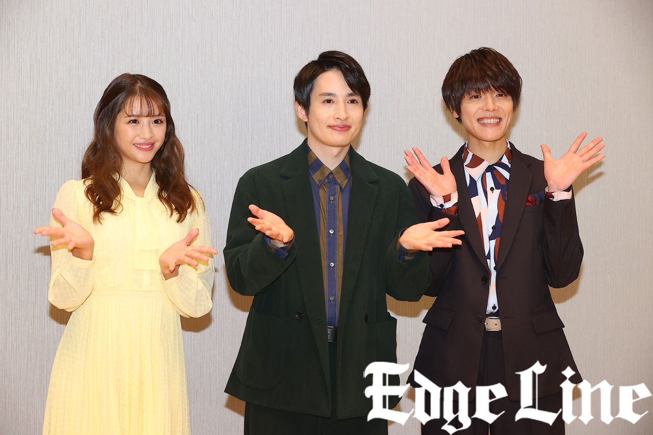 室は「松竹さんの今年の1年の締めくくりの作品に出演できることを嬉しく思います。今年2回目(1回目は舞台『垣根の魔女』)を立たせて頂きます」と、話していたが、浜中が「取材会前のコメント撮りのときに、『1回』と言ってて」と持ち出してイジると、室は「それはないわー」と、ひたすら苦笑いで2人でわちゃわちゃとやりとりする一幕も。