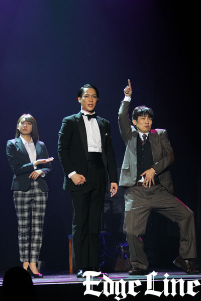 俳優・味方良介、女優・木﨑ゆりあ、ダンス&ボーカルユニット『α-X’s』の敦貴と匠海、『NON STYLE』の石田明が16日、東京・新宿の紀伊國屋ホールで舞台『熱海殺人事件 CROSS OVER 45』(演出:岡村俊一)公開ゲネプロを開いた。