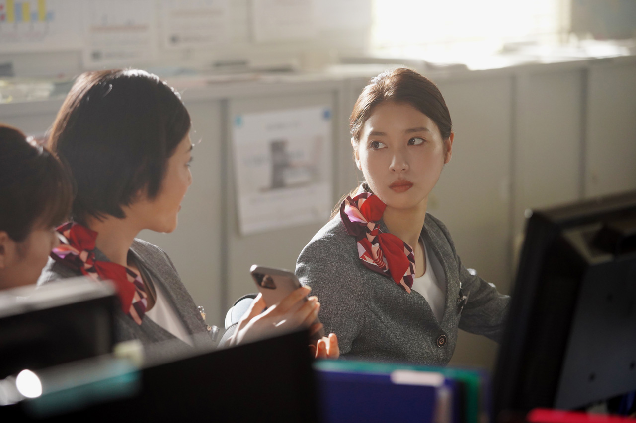 解禁となった場面写真では、ウェディングプランナーとして働く輪花と同僚の尚美(片山萌美)の姿や、輪花のマッチングアプリのプロフィール写真など、物語の入り口となるアプリに関わる場面から、アプリで出会った吐夢との水族館での初デートシーンながらデートのように見えない漆黒の衣装で輪花の後ろにシュッと立つ吐夢、木の陰から薄気味悪い視線を送る吐夢や、輪花と父・唯島芳樹(杉本哲太)が何かに警戒している姿。次第に登場人物が不穏な空気に包まれていく様子が切り取られている。