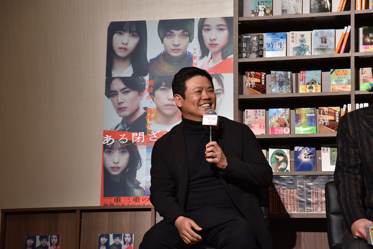 この日のトークは、東野圭吾による原作小説のファン、および既に原作を読み、映画も試写などで鑑賞した人たちから寄せられた期待や感想の声を元にした質問を中心に進行。多重構造のストーリーやトリックの難しさもあって長く「映像化不可能」と言われ続けてきた原作小説を映画にするにあたっての苦労について尋ねると、飯塚監督は「この映画の最大のトリックは、俳優たちのお芝居であり、そこが注目ポイントです」と俳優陣の緻密かつ質の高い演技があってこそ、映像化が可能だったと強調する。「通常のサスペンスであれば、『この人、怪しいぞ』という寄りのカットを多用するけど、今回はそれをやるとすぐにバレてしまうので、それを避けながら作りつつ、ハラハラやヒリヒリを継続させなくてはいけなくて、そこは難しい点でした。ミスリードってすごく難しくて『これはミスリードです』とやったらもう、それはミスリードではなくなってしまうので、その加減を俳優のみんなが、眼差しひとつとかで丁寧にやってくれました。それを僕らがどう撮り、どうつなぐかというのは、編集でも苦労したところです」とその難しさをふり返った。