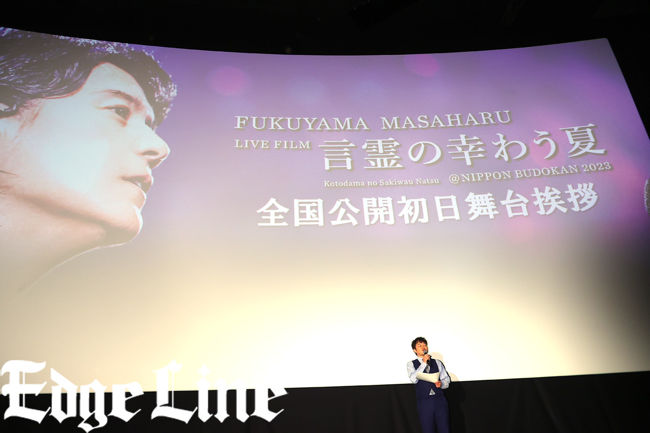 俳優で歌手・福山雅治が19日、東京・丸の内ピカデリーでライブフィルム『FUKUYAMA MASAHARU LIVE FILM 言霊の幸わう夏 @NIPPON BUDOKAN 2023』(監督:福山雅治/配給:松竹)全国公開初日舞台あいさつを俳優・柊木陽太とともに開き、司会はアナウンサーの荘口彰久が務めた。