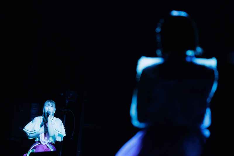 そして「echoes」からは東京公演のスペシャルゲストである東山奈央が登場。この曲はCD音源でも東山がBuddy’s Vocalとして友情参加しているが、音源そのままの夢のコラボがライブで実現したことになる。美しく重なり合う二人の歌声もさることながら、曲の途中でペコリとお辞儀をしながら目を合わせたり、姫と王子のように手を取り合ったり、あるいはハグしたりと、二人の仲のよさをうかがわせるパフォーマンスでも会場を大いにわかせていた。