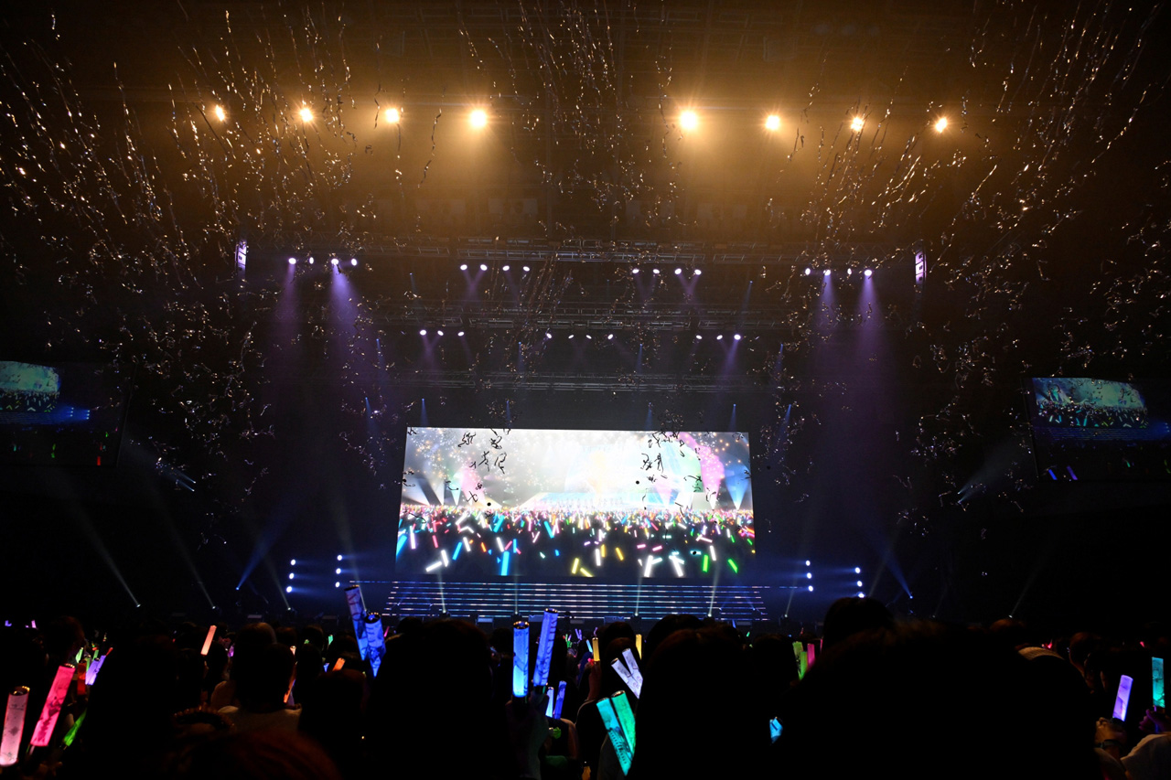 告知コーナーでは『アイドリッシュセブン』に関する最新情報が届けられたほか、棗巳波の誕生日を会場全体で祝う場面も。その後『劇場版アイドリッシュセブン LIVE 4bit BEYOND THE PERiOD』興行収入30億円突破のくす玉が割られるともに31億円突破の速報が伝えられると、会場全体から大きな拍手が贈られ、この快挙を盛大に祝福した。