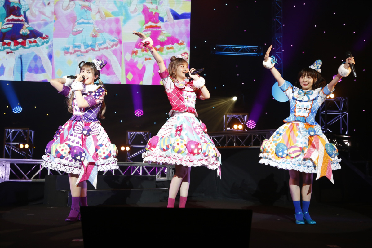 続いても、あんな(芹澤優)とさら(若井友希)、そしてえも(久保田未夢)のえもティックスターによる「チョコッティこちょハート」が初披露。会場からは驚きが上がりながらも、大きな拍手が沸き起こりました。次に披露されたブランニュー☆ガールズのみらい(林鼓子)、りんか(厚木那奈美)・める(森嶋優花)による「Brand New Girls」では、キラキラとした可憐なパフォーマンスで会場を魅了しました。