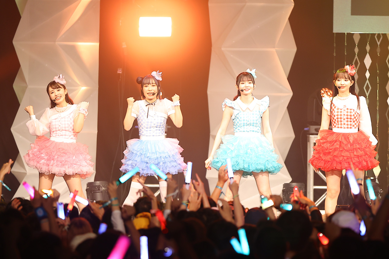 4曲を披露していくなか、4曲とも4人でステージいっぱいに広がったり、左右両方に4人で何度も往復してステージすべてを使い切りながらと、9周年を迎えたベテランのアイドルらしい安定したステージング。さらに、この日に来ていないメンバーの振り付けも取り入れて披露していたりと“9人の存在感”を感じさせるようなステージとなっていた。