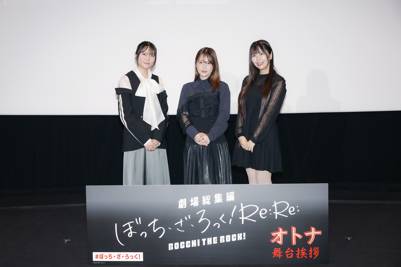『劇場総集編ぼっち・ざ・ろっく! Re:Re:』(監督:斎藤圭一郎/配給:アニプレックス)オトナ舞台あいさつが9月1日に東京・新宿バルト9で開催され、伊地知星歌役の内田真礼、廣井きくり役の千本木彩花、PA/ジミヘン役の小岩井ことりが登壇した。