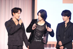 佐藤は2025年のイベントのために、「よりパワーアップした姿を……」といいながらおもむろにジャケットを脱ぎだし、漲っている筋肉をアピール!正面右隣の大平らから「そこ!?」と驚かせたり、左隣の與那城からは「撮らないで~!」とワチャワチャさせる結果に。