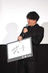 さらに横浜自身の“正体”は?というものに『なし』と回答。「みなさんが自分の正体を言ってくださるのはありがたいのですが、自分からみなさんに自分のことをあまりみなさんに伝えたくない……。というのも、役者はミステリアスでいるのがいいなと思うし、人柄をすごく知られて作品に影響するのも嫌だし、とにかく自分は排除していきたいのでなし!申し訳ありません」と自身の考えを前面に話す。ここで司会が山田孝之へ「やっぱり水みたいですね」というと、山田孝之は「僕が1番近かったみたいですね」とニッコリ。しかし、藤井監督は「ちょっといま僕も焦ってます。もうちょっと何か言わなきゃだよって!(笑)」とツッコミつつ「でも、そういうところが流星のいいところ」と称えていた。