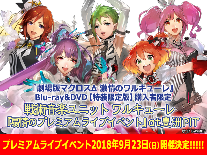 こちらのソロイベントは現在劇場公開中の『劇場版マクロスΔ 激情のワルキューレ』のBlu-ray&DVD発売が8月28日に決定したことを受け、記念してのもの。もちろん、『ワルキューレ』の美雲役のJUNNA、フレイア役の鈴木みのり、カナメ役の安野希世乃、レイナ役の東山奈央、マキナ役の西田望見の出演が決定している。なお、チケット抽選申込券はBlu-ray&DVD【特装限定版】に封入されるとのこと。