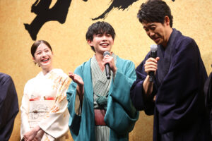 アイドルグループ『なにわ男子』長尾謙杜が12月18日に東京・有楽町朝日ホールで映画『室町無頼』(脚本・監督:入江悠/配給:東映)ジャパンプレミアに俳優・大泉洋、松本若菜、北村一輝、柄本明、堤真一、入江悠監督とともに登場した。