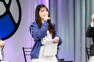 開演時間となると、制服姿で登壇したキャスト陣が「ようこそー!」と、声をあわせて華やかにお出迎え。『虹ヶ咲学園スクールアイドル同好会』とAnimeJapanといえば、2023年は優木せつ菜役を楠木ともりから林鼓子が引き継いだことを発表、2024年はえいがさきのキービジュアルなど最新情報の発表と、毎年大きな発表が行われているステージ。それだけに、事前に寄せられたファンからのおたよりに今年のステージも楽しみにしているとの声があり、小泉も「毎年出演させて頂き、何かしらの発表をさせて頂けて嬉しいです」と、笑みが浮かぶ。