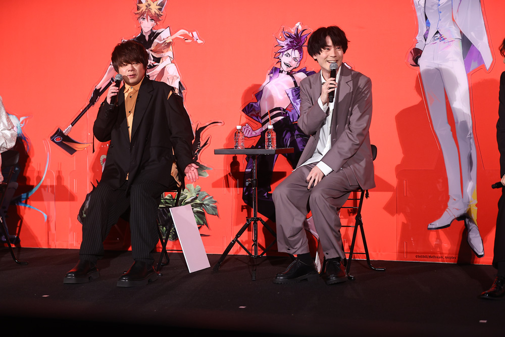 また、それぞれのキャラクターを説明していくなか松岡はヒーローランキング5位でコンビで活動するリトルジョニー&ビッグジョニー役を演じると公式サイトでは公開しているとしており、それに沿ってトークしていたが、隣にいた内山がふと「2人とも演じるの?」と問いかけると、松岡は思わず「違います」と口走ってしまう展開に。一体だれが“もう1人”を演じるのか現時点では不明だが、松岡は思いがけず言ってしまいそうになったため「昂輝さん、ほんとこういうとこ怖いんですよ!」と、恐れおののき場内は爆笑となっていた。
