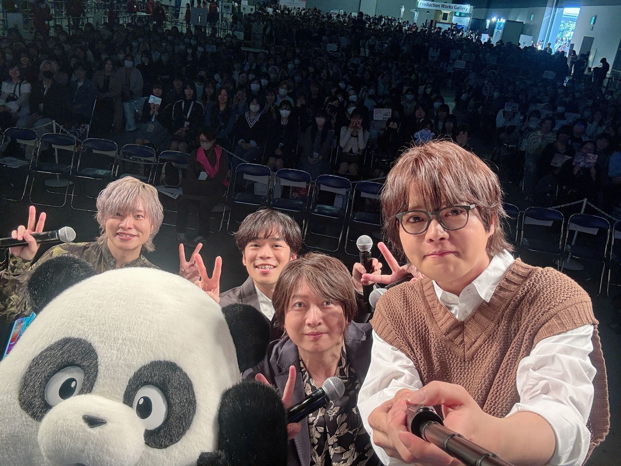 また、フォトセッションの時間になると(『夢中さ、きみに。』劇中にて登場する)パンダの着ぐるみが登場し、会場は盛り上がりを見せました。さらにキャスト陣は客席のみなさんと共に記念の写真をパシャリ、思い出深い一枚になりました。