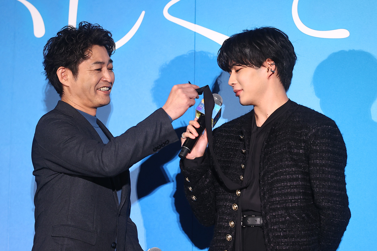また、長尾から當真へサプライズで花束もプレゼント。當真といえば、これまでの本作イベントで、撮影中に見つけた四つ葉のクローバーを栞にしてキャスト・スタッフ全員にプレゼントしたエピソードが語られているが、そのお返しとして感謝の気持ちを花束に込めた。當真はこうした長尾の気遣いの細やかさに「こういうところだと思います!」と、感激で笑みを浮かべながら感謝していた。