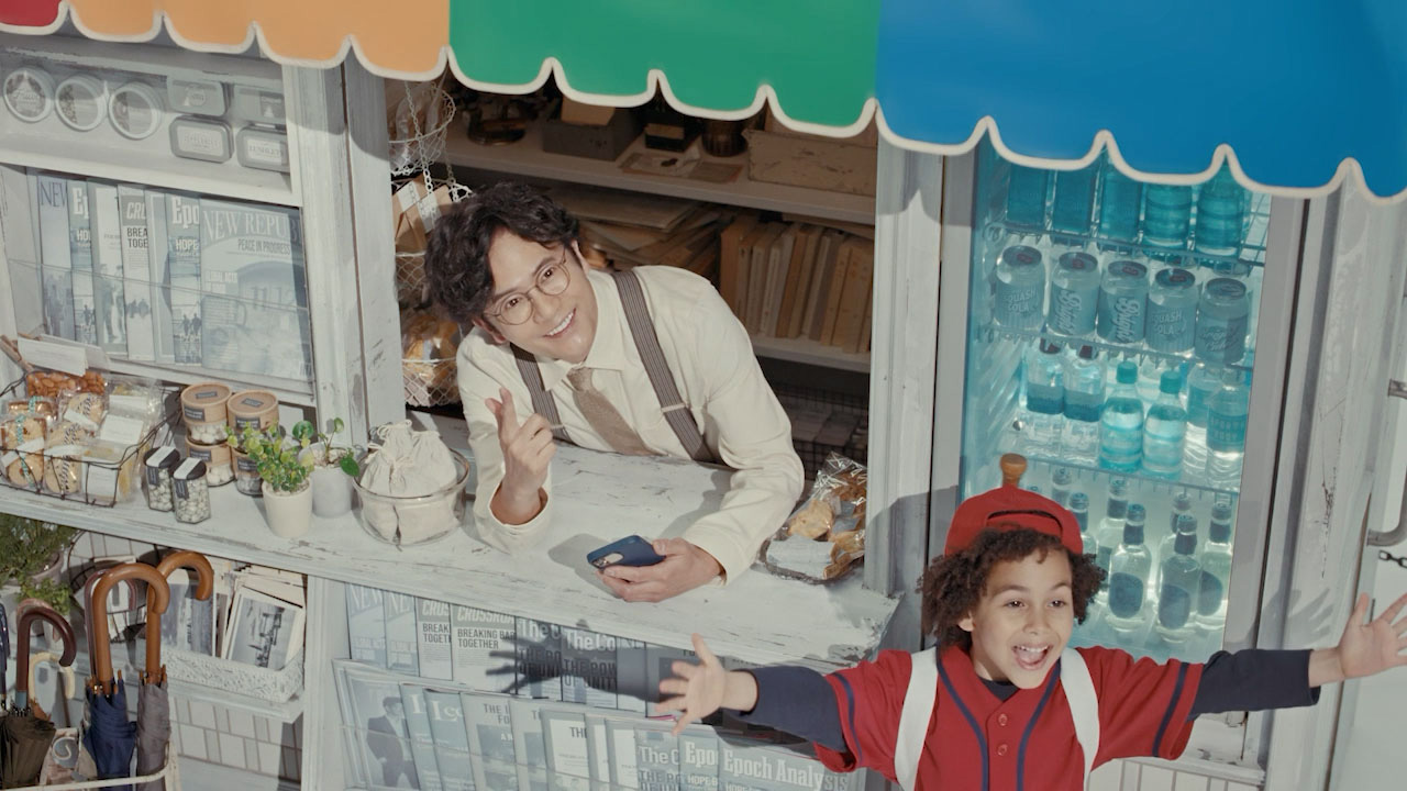 CMシリーズは、街角に佇む小さなニューススタンドが舞台。店主である稲垣と、そこを訪れるさまざまな人々とのやりとりを通して、SmartNewsが「スマイルニュース」を届けようとする理由が少しずつ明らかになっていくというコンセプト。ある日、開店準備中の店主の稲垣がはたきで掃除をしていると、突然、乃木坂46のメンバーが登場。場面は一転してライブ会場へと変化。また別の日には、撮影現場で休憩中の乃木坂46のメンバーの中に紛れ込むなど、まるで異世界転生のように「ニュースが人々を次の場所へ連れていく」不思議な展開が描かれます。こうしたストーリーのなかで、稲垣と乃木坂46のメンバーが、SmartNewsの「雨雲レーダー」や「クーポン」などの機能、さらには「スマフェス2025」の“スマイルくじ”を楽しむ様子が描かれる。