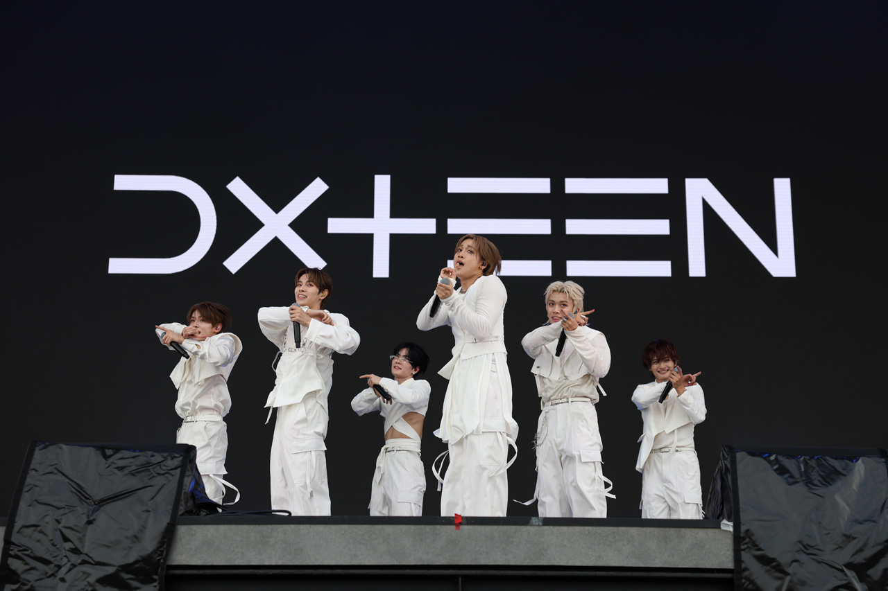 続いて登場したのは DXTEEN。序盤から「Dealio!?」「Handle」といったアップテンポなナンバーを立て続けに披露し、メンバーの一挙一動に会場にいるファンから悲鳴が上がり、ステージ全体を躍動感で包み込みました。