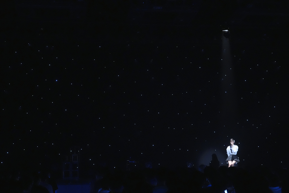 ステージの後ろに星空が広がり、大西自身が椅子に腰掛けて歌ったのは、ピアノの旋律が美しくも儚い新曲「今日が過ぎても」と「にじんでく」。胸が苦しくなるような歌詞の世界を、しっかりと届けていく。