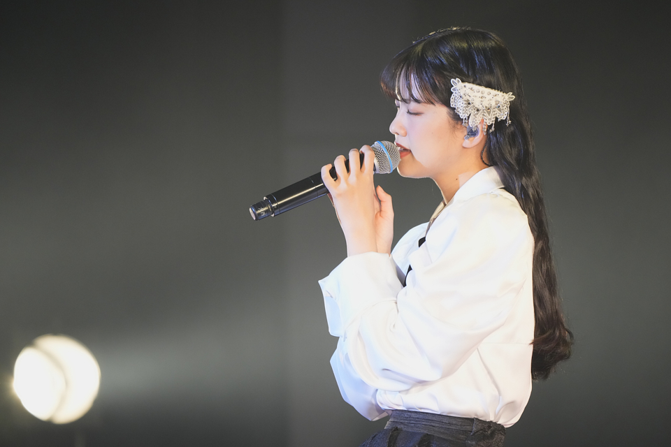 その後もライブは、朗読を交えながら歌を披露していくという構成で進んでいく。ポップチューンの「花と青空」や、この公演用にバラード調にアレンジされた「本日は晴天なり」や「初恋カラーズ」。いつもは盛り上がる曲の違う魅力を見せ、「夏夢花火」まで歌う。