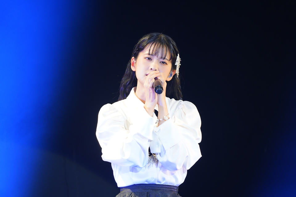 開演時間になると、大西亜玖璃による朗読が聞こえてくる。「恋をしたことが、ありますか?」という言葉から始まったストーリー……どうやら客席のファンは、主人公の女の子(=あぐぽん)の恋の相談相手の“君”らしい。「今日は来てくれてありがと。きっと、ちゃんと、歌えると思う」と“君”に伝えると、ステージに登場した大西が、先行配信されていた新曲「世界の全てがさよなら」を歌い始める。少し懐かしいメロディとアレンジ。そこにピュアで真っ直ぐな歌声が乗り、切なさを助長する。いつもは声を出して盛り上がるファンも、この公演は席に座ったまま、彼女の歌に聴き入っていた。続けて切ない片想いを歌った新曲「いつもどおりに」では、シンプルで美しいメロディに胸がぎゅっとなる。
