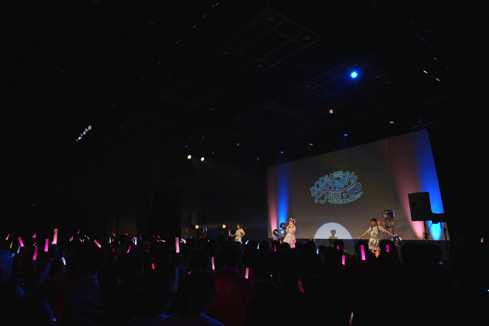 オープニングはナレーションから。昼公演を受けて「今日は失恋記念日。一緒にパーティーしてくれる? 君も賛成してくれるかな? ドゥー・ユー・アグリー?」と曲の前フリをすると、「Do you agree?」から元気良くライブが始まる。観客もすぐに立ち上がり、ペンライトを突き上げる。ダンサーの2人が加わり「ジェリーフィッシュな君へ」までをパフォーマンス。そして、ここからのファンサービスが凄まじかった。