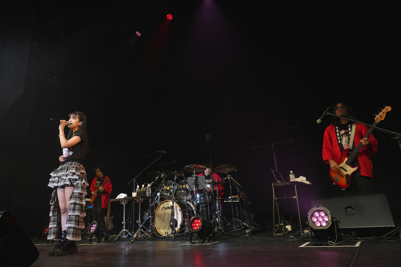「これからも進化し続けていくので! 何を歌っても、何をしゃべっても盛り上げてくださってありがとうございます。次のライブがいつになるかわからないんですけど、また遊びに来てくれますか? 愉快な仲間たちが増えていくよう私も頑張っていくので、これからも応援よろしくお願いします」と伝えて、最後にもう一度「イニミニマニモ」をみんなで歌って、ロックな夜を締めくくった。