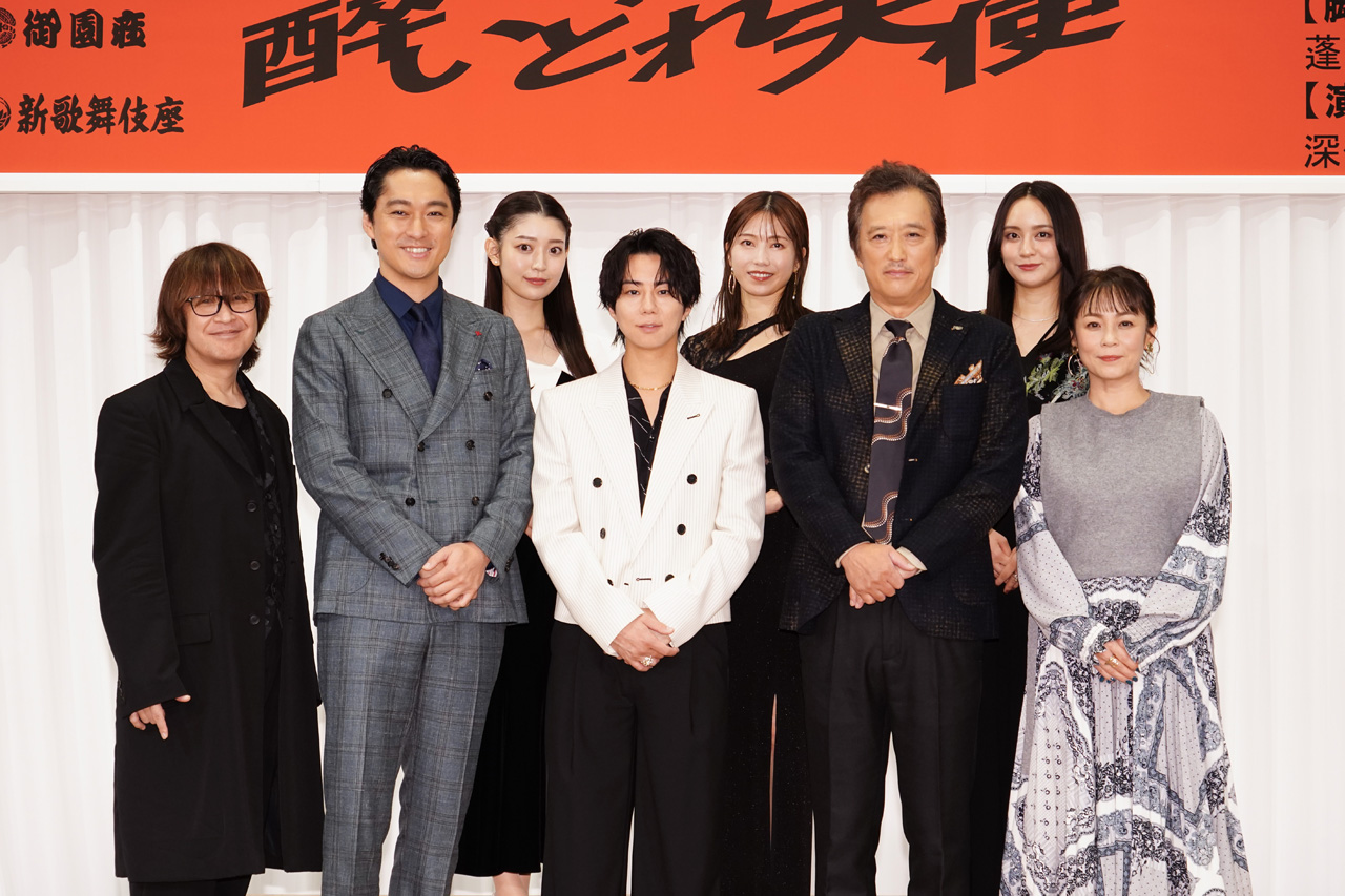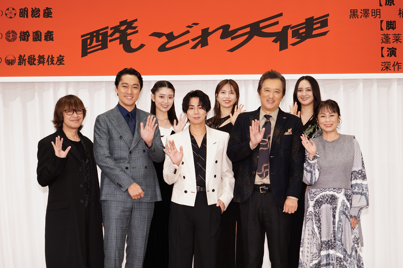 俳優・北山宏光が10月16日に都内ホテルで主演舞台『醉いどれ天使』(演出:深作健太)製作発表会見を演出の深作健太氏、俳優・渡辺大、横山由依、岡田結実、阪口珠美、佐藤仁美、大鶴義丹とともに開催した。