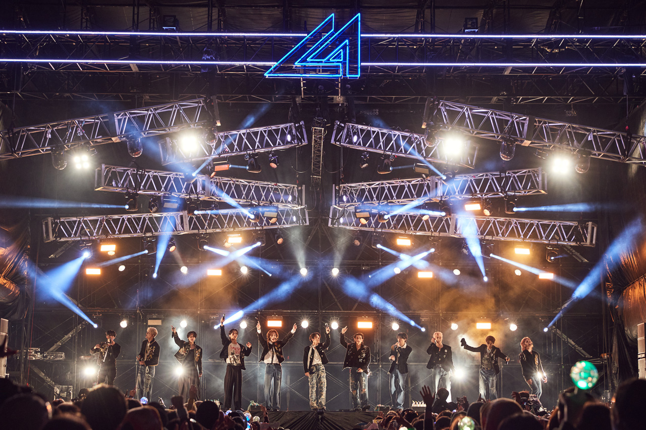 池﨑が “AZUMA”コールや“INI”コールで会場を一つにし、その勢いのまま「Party Goes On」へ。フェスならではの熱量で会場全体を巻き込むと、4TH SINGLE収録曲「INItialize」、最新アルバムから「What A Night」と幅広いジャンルの楽曲でINIらしいステージを繰り広げ、会場の空気をINI色に染めていきました。