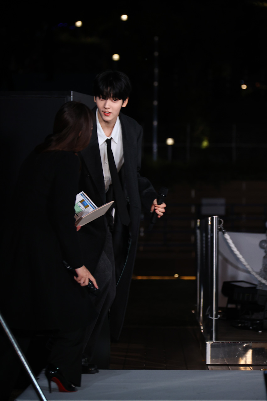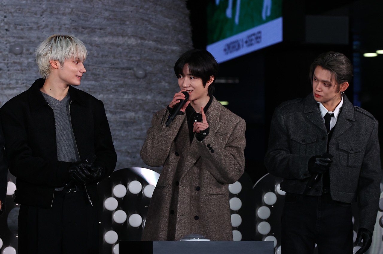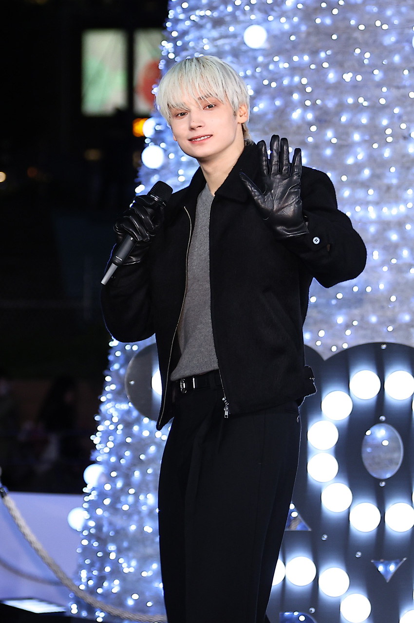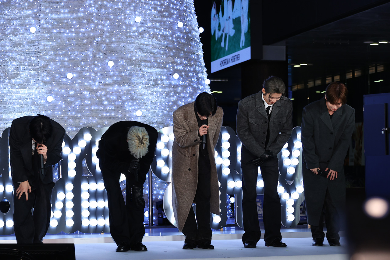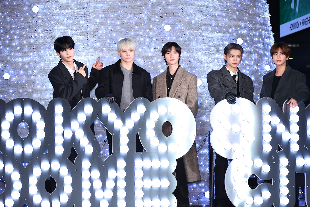 高さ約15メートルのツリーが設置されている会場に5人が冬コーデで姿を見せるなか、まずはトークショーが開催。HUENINGKAIはイルミネーションへ「韓国でもいろんなところでイルミネーションがありますが、イルミネーションは楽しい気持ちになります」と、どこで見ても趣き深いとしみじみ。