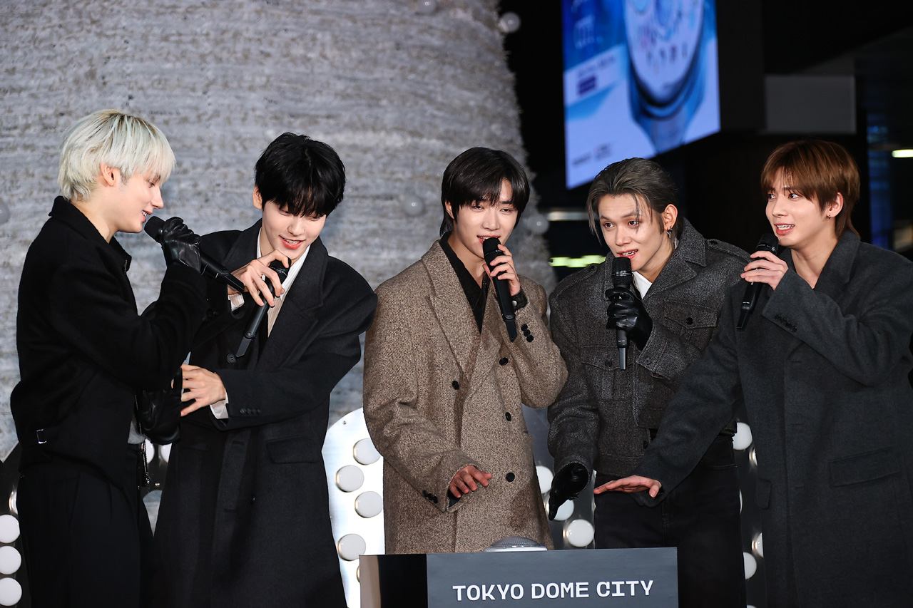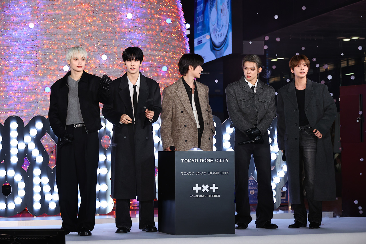 ボーイズグループ『TOMORROW X TOGETHER』のSOOBIN(スビン)、YEONJUN(ヨンジュン)、BEOMGYU(ボムギュ)、TAEHYUN(テヒョン)、HUENINGKAI(ヒュニンカイ)が11月17日に東京ドームシティのセントラルパーク芝生広場でウィンターイルミネーション『TOKYO SNOW DOME CITY』点灯式に登場した。