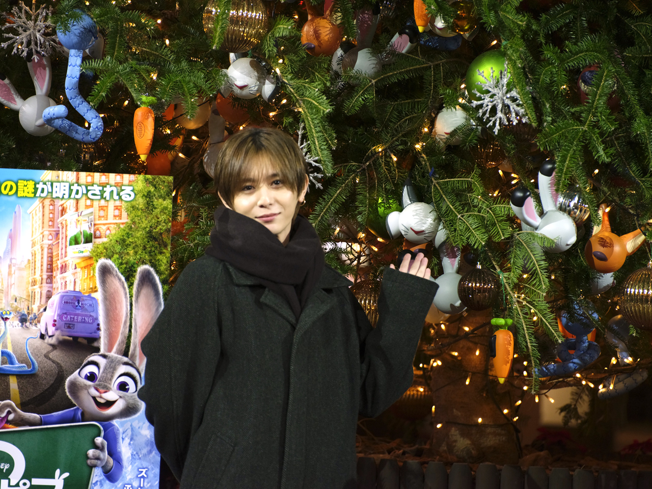 最後に来月はクリスマスということで、クリスマスや東京ディズニーリゾートでの思い出を聞かれた山田は、とある誕生日に初めてディズニーホテルに宿泊したエピソードを披露。「親友に急にタクシーに乗せられたと思ったら、連れていかれたのが東京ディズニーシー(R)だったのですが、1日遊んで夜帰ろうと思ったら、実は東京ディズニーシー・ホテルミラコスタも予約してくれたんですよ!恋人みたいなのですが…(笑)忘れられない誕生日になりましたね」と話した。その後、日本全国ズートピア化計画宣言の一環として、山田涼介が自身の演じるキャラクター・パウバートのオーナメントをツリーに飾ると同時にツリーが鮮やかに点灯!集まった観客から大きな拍手と歓声があがった。