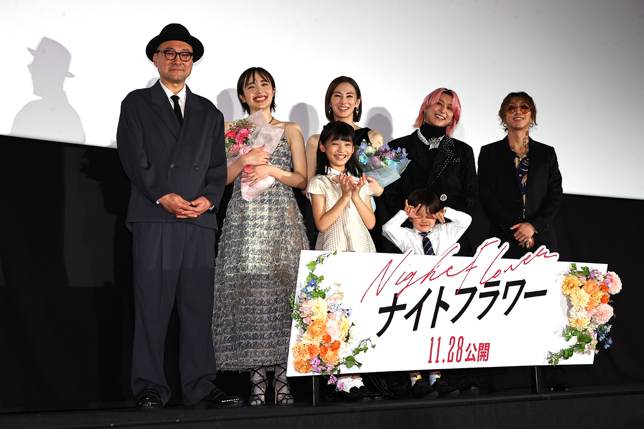 アイドルグループ『Snow Man』佐久間大介が11月27日に東京・丸の内ピカデリーで映画『ナイトフラワー』(監督:内田英治/配給:松竹)前夜祭イベントに俳優・北川景子、森田望智、バンド『SUPER BEAVER』渋谷龍太、内田英治監督とともに登場した。