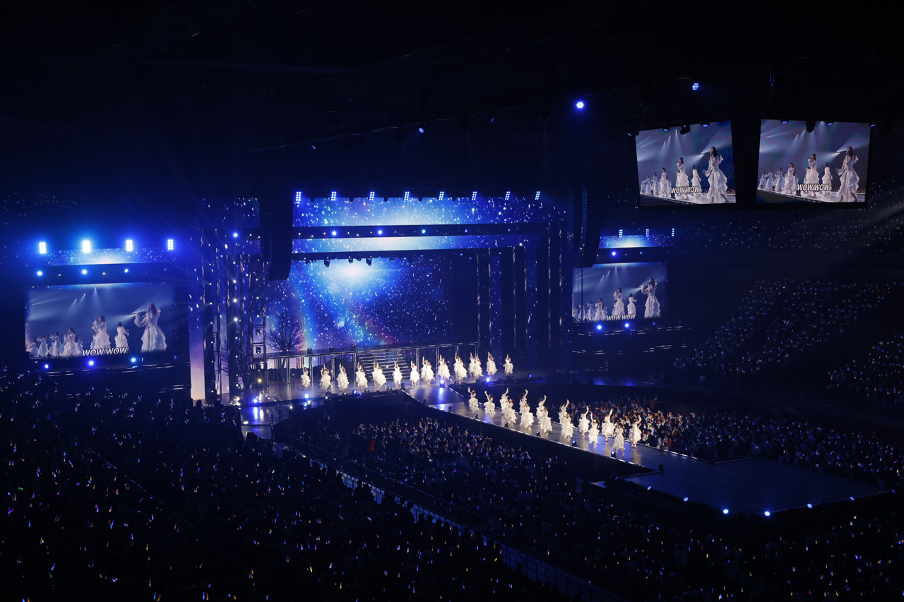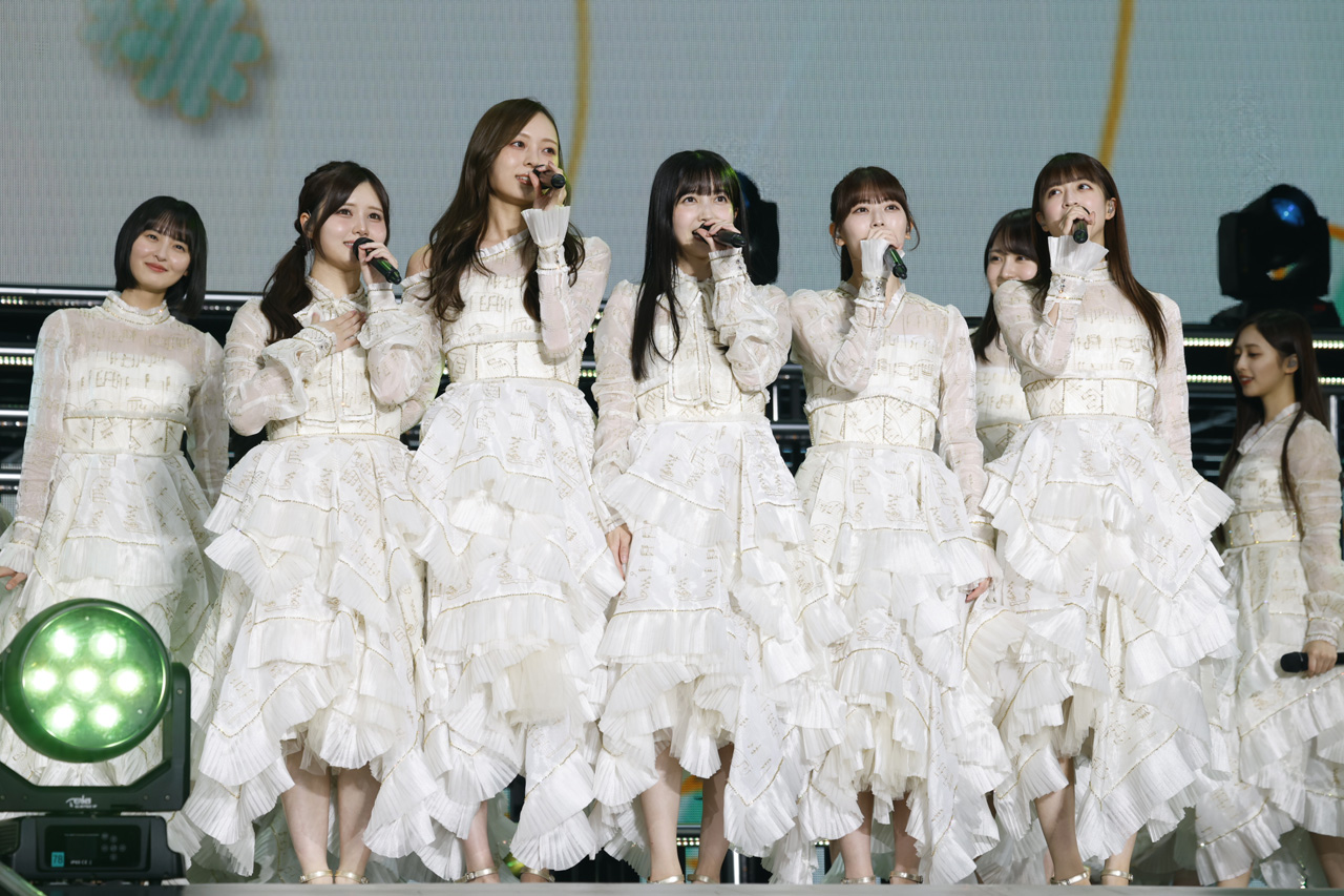 本編ラストに披露されたのは、久保がセンターに立つ3期生楽曲「僕が手を叩く方へ」。オーデイション合格時から近年までの思い出の映像を背に、メンバーが一丸となって温かな歌声を届けると、クラップで会場がひとつになっていく。最後に全員がギュッとくっついたところで、約2時間にわたるライブ本編は幕を下ろした。