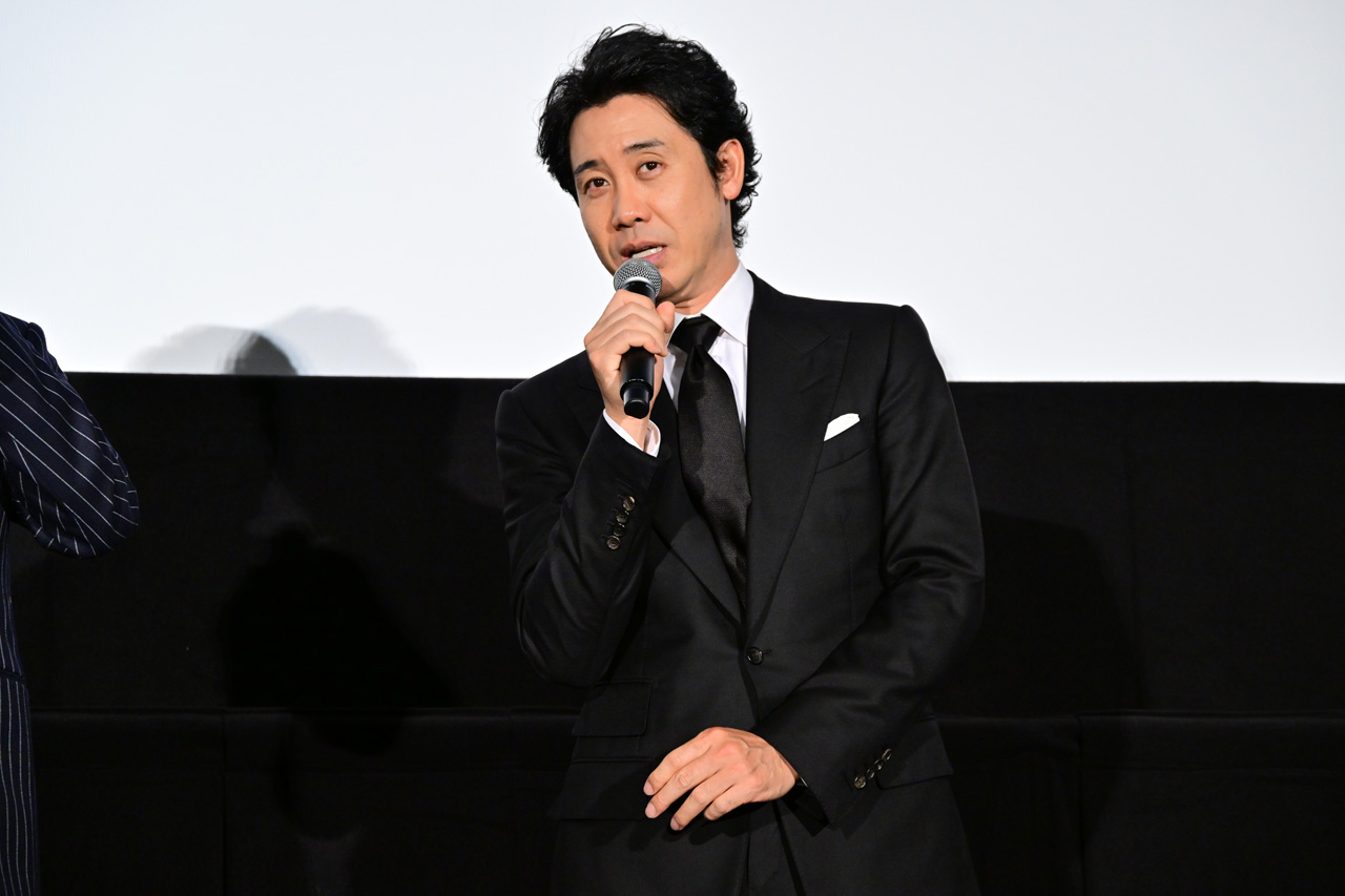 犯人逮捕のためには手段を選ばない孤高の刑事・護道心太朗役の大泉は「(雨男は)洋ちゃん!」との観客の声に、「誰ですか?洋ちゃんと言うのは?」と“福山モノマネボイス”で笑わせつつ、主題歌「木星 feat. 稲葉浩志」に触れて「この度、福山雅治と共に主題歌を歌わせていただいた大泉洋でこざいます。私が歌っております」と冗談を交え、軽快にトークがスタート。
