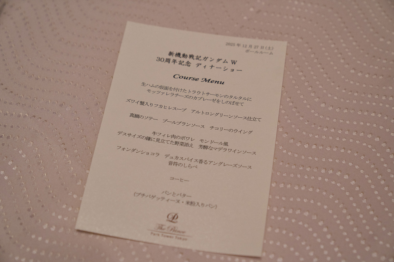 『新機動戦記ガンダムW』は『機動戦士ガンダム』シリーズ内の宇宙世紀とは異なる世界観を描いた『オルタナティブシリーズ』の第2作目。1995年4月7日にTV放送がスタートした。本イベントはTV放送から30周年を記念した、ガンダムシリーズ初となるディナーショーとなっている。