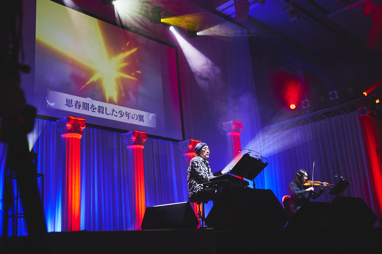 「さあ、人々に『安らぎ』を!戦士には『栄光』を!敗者には『慰め』を!エレガントにレディ……」というトレーズの口上の後、大谷さんによるライブコーナーへ。本イベント用に書き下ろされたという新曲「Hymn for GUNDAM W.戦争への不安、恐怖、狂気そして祈り」に続き、「任務遂行」「思春期を殺した少年の翼」がアニメ映像と共に届けられた。