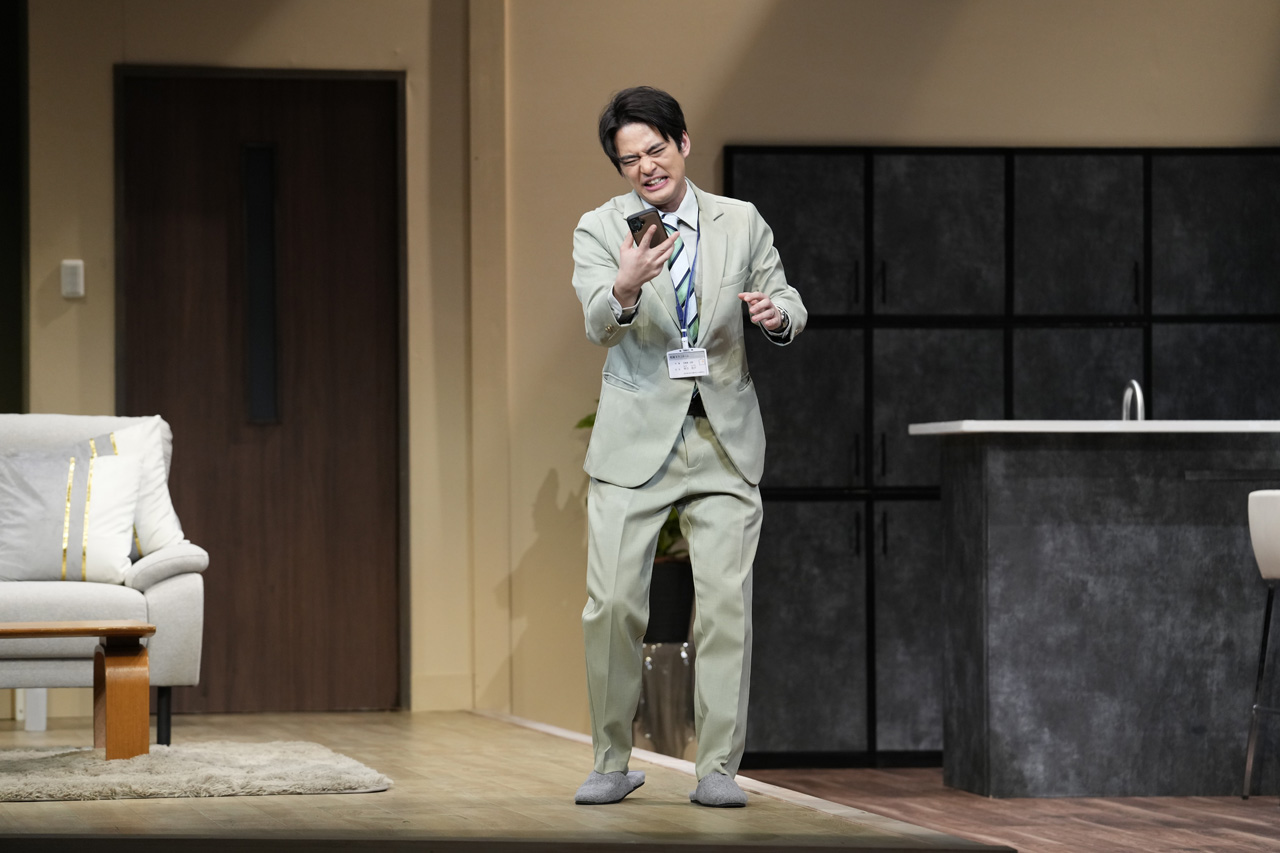 プレスコールでは、ハウスメーカー・松波キラリホームのモデルハウスに不具合が発生し、さらに主人公・努力良介(中山優馬)の元恋人・佐久間紀子(秋元才加)と、そのパートナーという怪しい男・山田(佐藤アツヒロ)が内覧に訪れるという場面を披露。コミカルなやりとりを見せるシーンとなりました。