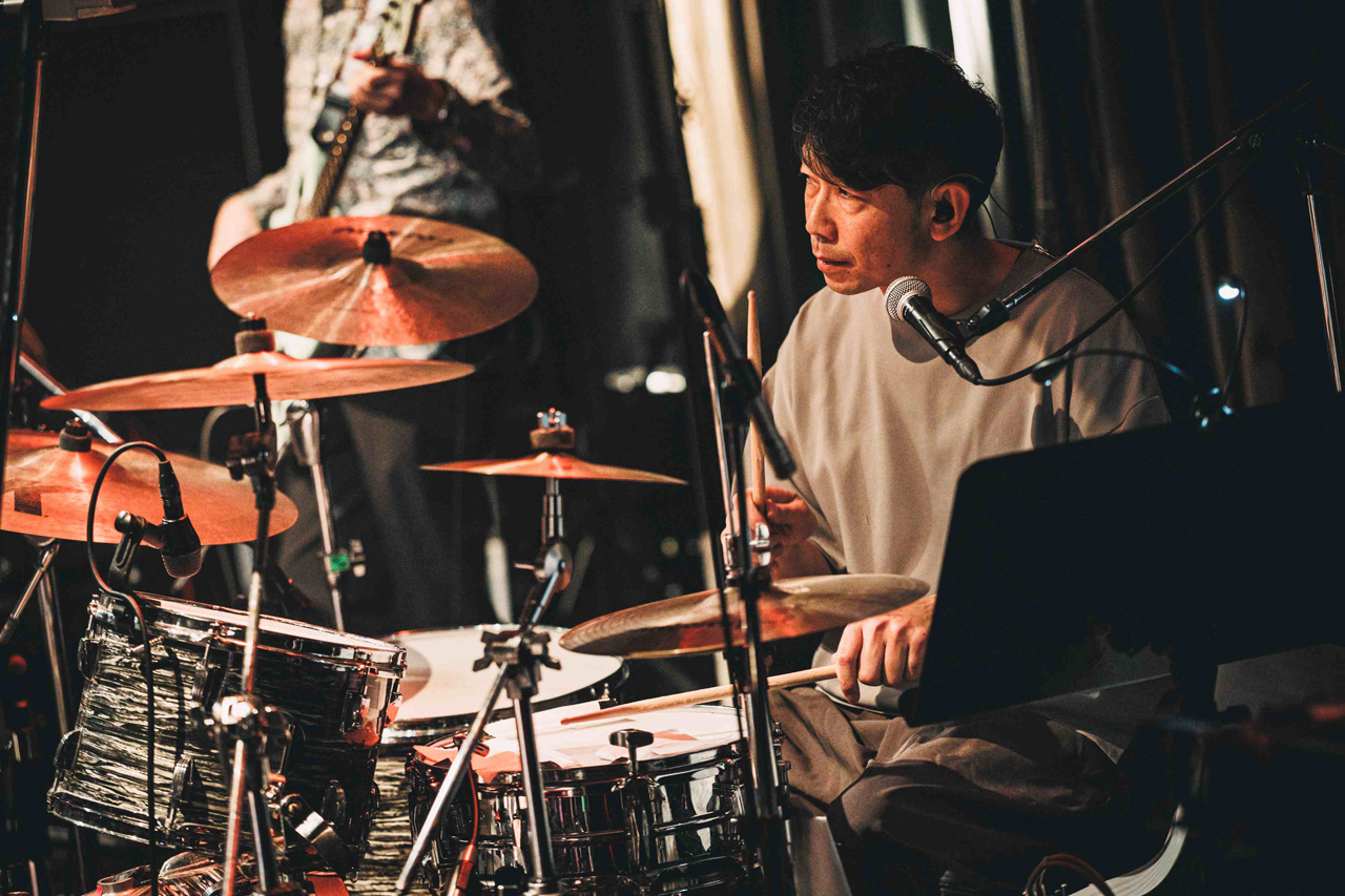 楽曲が求めるフレーズを丁寧に積み重ねることで、強靭なグルーヴ、美しいサウンド、豊かな音像を生み出す。それぞれがそれぞれの楽器と歌声でやるべきことを貫けば、「PING&PONG」、「クモと蝶」、「Chewing Gum On The Street」とライブが進むごとに目の前の景色はガラリと変わる。かと思えば、数日遅れのクリスマスギフト「Snow」、「Carol」からの「だれかの詩」、「季節の最後に」など、季節が巡り、曲たちは自然と連なり、ライブを通してひとつの物語を描いていくようにも感じるから不思議だ。松江潤(Gt.)、沖山優司(Ba.)、小松シゲル(Dr.)、渡辺シュンスケ(Key.)。センスとスキルとユーモアを兼ね備えたメンバーは、素晴らしく芸達者であると同時に、これしかできないという強さも持ち合わせていて。それがしなやか、かつ、大胆に発揮されたのが「Chewing Gum On The Street」。松江が全身から放つエモーショナルなギターソロと、その裏で繰り広げられる4人の静かな駆け引きは実にスリリングで、圧倒的だった。どれほど圧倒的かと言うと、「めっちゃかっこいいギターを弾いてくれた松江潤!」って、堀込泰行が思わずメンバー紹介を前倒しするくらい。そしてそのことをすっかり忘れて、名曲「燃え殻」のふくよかな余韻を味わう間もなく予定外のMCを挟み込み、慌ててもう一度メンバー紹介を始めようとしちゃうくらい(笑)。